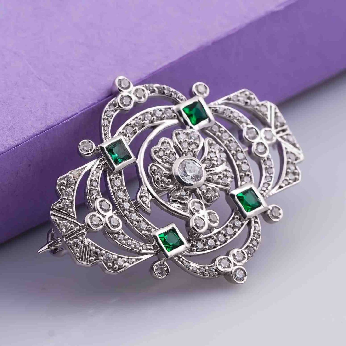 Step into timeless luxury with the ZALKARI Silver Epoque Antique Emerald & Diamond Brooch, a masterpiece inspired by vintage elegance. Crafted from premium sterling silver, this brooch features a breathtaking combination of rich green emeralds and sparkling diamonds, meticulously arranged in an antique-inspired design that exudes sophistication and charm. Ideal for women who appreciate heirloom-quality jewelry, this piece is a perfect gift for special occasions like anniversaries, weddings, or milestone celebrations.